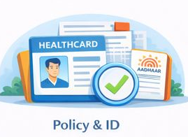 Health e-card/policy number and a valid government photo ID (Aadhaar/Driving License/PAN/ Passport).